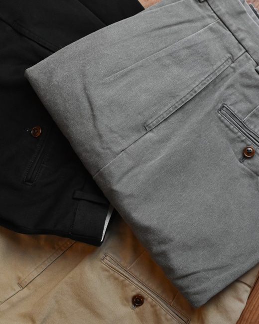 70年代のブルックスブラザーズのスラックスをベースにパターンを一新し製作されており、