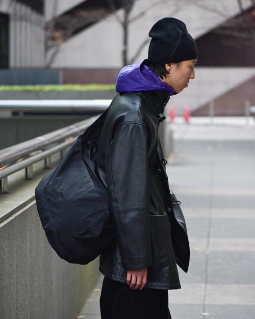 メッセンジャーバックを背負って、ビーニーを被り、シティ感がありながらも重厚感のあるクラシックなスタイリングを組んでみました。