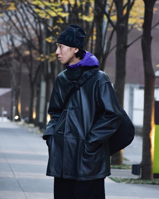 店頭でもご好評頂いてるCCUより、ファッショナブルなシープレザーのダッフルコートが入荷致しましたので、スタイリングにてご紹介させて頂こうかと。