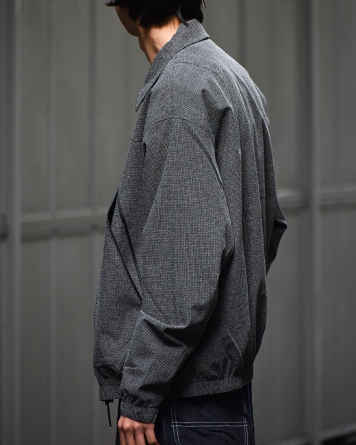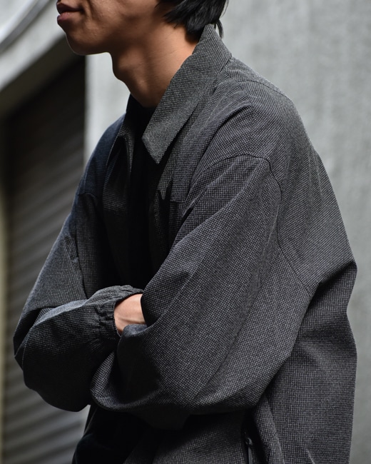 身幅は広め、着丈は短めのボックスシルエットの為、コートのインナーやダウンベストとの重ね着をしていただくと良いアクセントになるかと思います。
