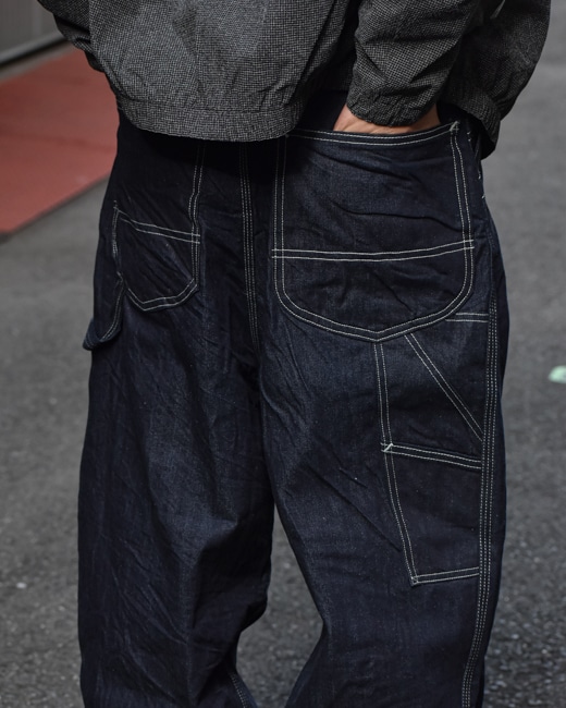 形は、股下が深いワイドストレートのペインターパンツ。