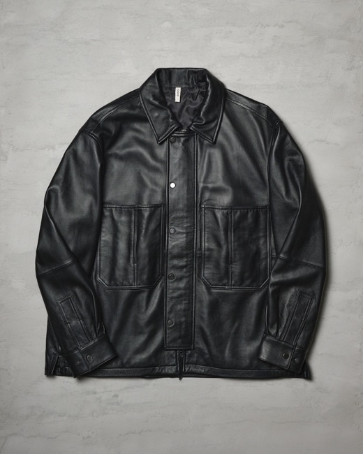 ウェアでは、カバーオールやボンバージャケット、フレンチワークのエッセンスを取り入れたトラッカージャケットなど、実用的なワークウェアのディテールを現代的なシルエットへと昇華。人体とレザーの間の「余白」を大切にしたパターンメイキングにより、袖を通した瞬間からしっとりと身体に馴染む、至高の着用感を実現しています。